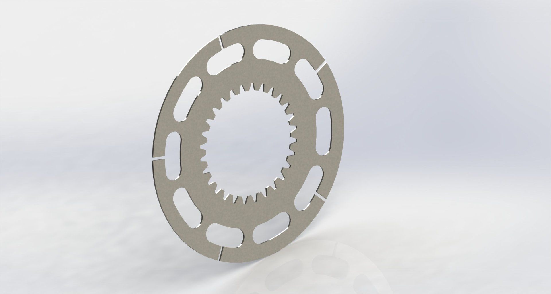 Kopf- und Fußkreis sind gekürzt, so dass sich etwa eine gerade Flanke ergibt und damit eine günstige Flankenbelastung. Die Einschlaggefahr ist durch die Flächenberührung und die Zähnezahl gegenüber anderen Ausführungen minimiert. Darüberhinaus ist das Verhältnis der Reibflächendurchmesser d zu D (d = Bohrung der Außenlamellen und D = Außendurchmesser der Innenlamelle) mit etwa 0,73-0,8 gewählt. Diese Werte beruhen auf langjährigen Erfahrungen.